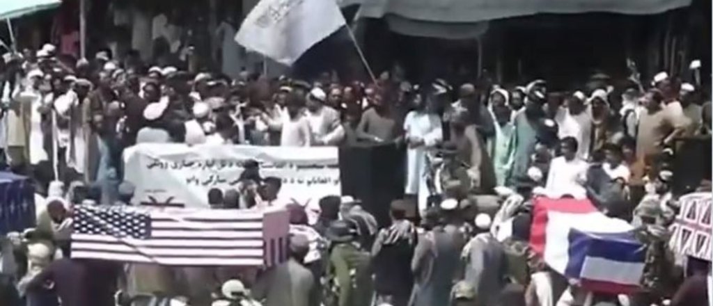 Some of the crowd held guns aloft, while others waved Taliban flags or snapped the procession on mobile phones.
