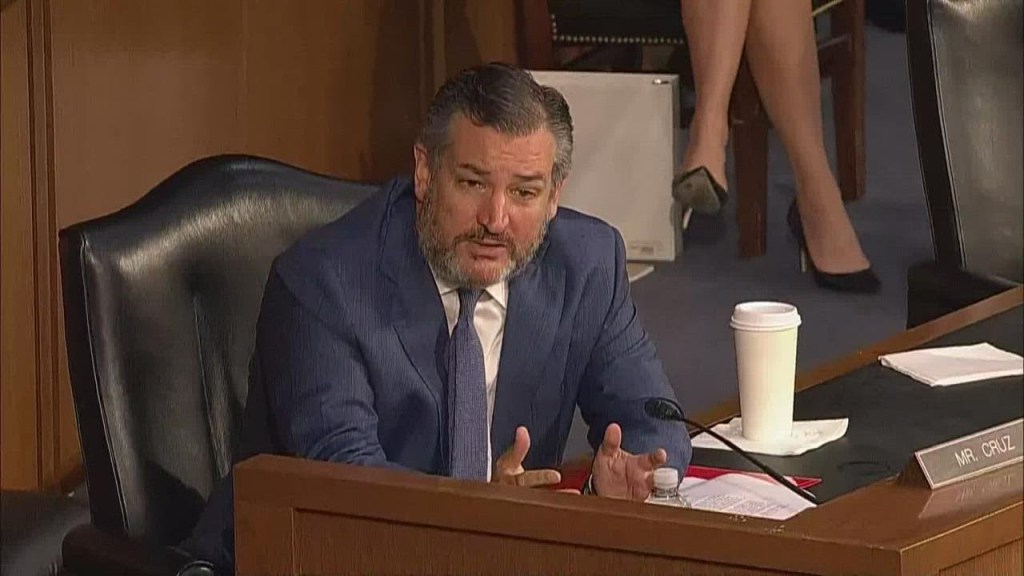 Senator Ted Cruz questions an FBI official on the role played by Ray Epps, a Marine veteran, who was seen in video from January 6 urging Trump supporters to go into the building.