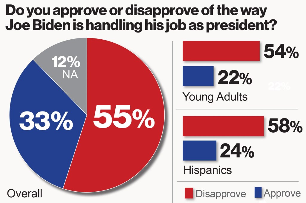 Feelings about the economy are likely to blame for Biden’s low approval ratings, with the economy and jobs topping the list of respondents’ top concerns, along with the cost of living and inflation, The New York Times reported.